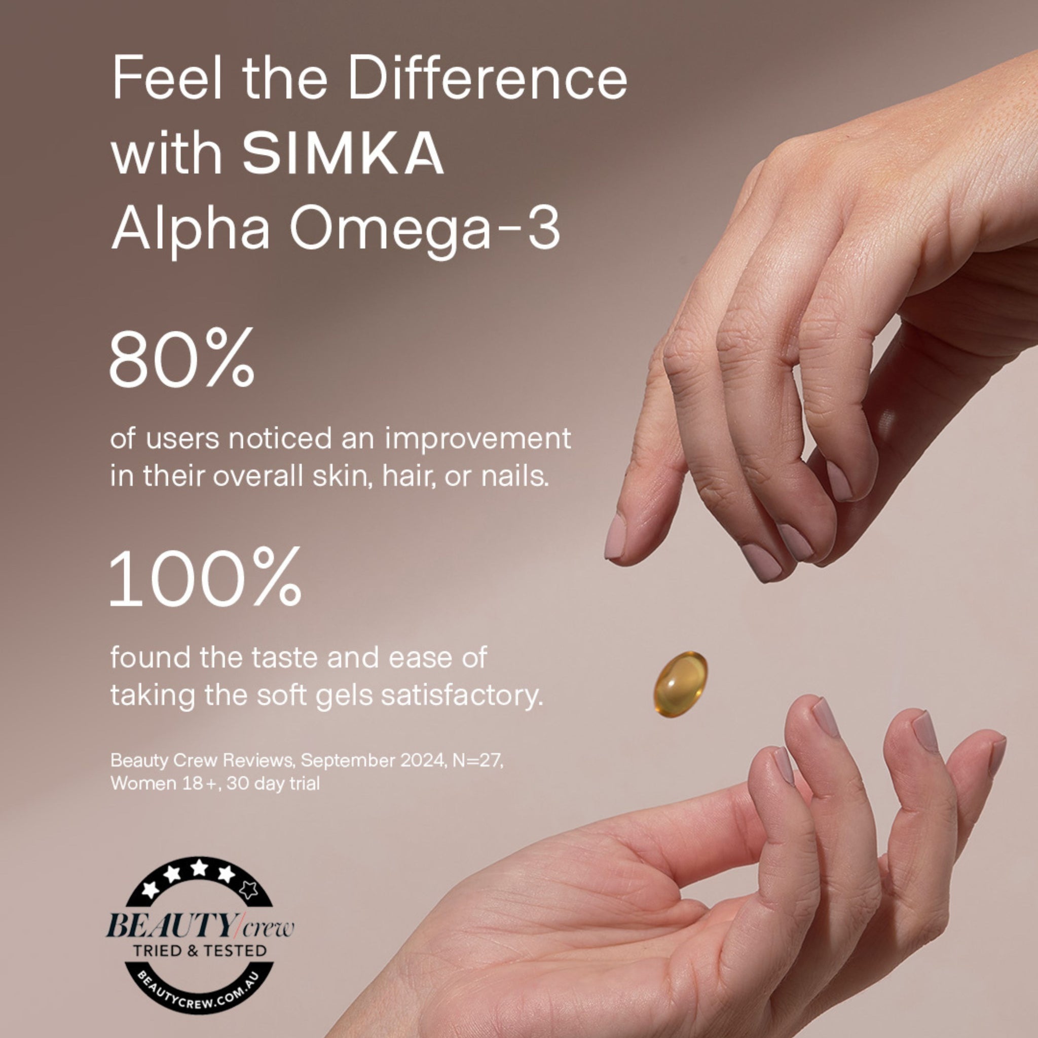 SIMKA Alpha Omega-3 is next generation plant-based Omega-3. Perfectly balanced to supply your body and skin’s omega-3 needs. Pure, ethically sourced and vegan with no fishy taste during or after consumption.